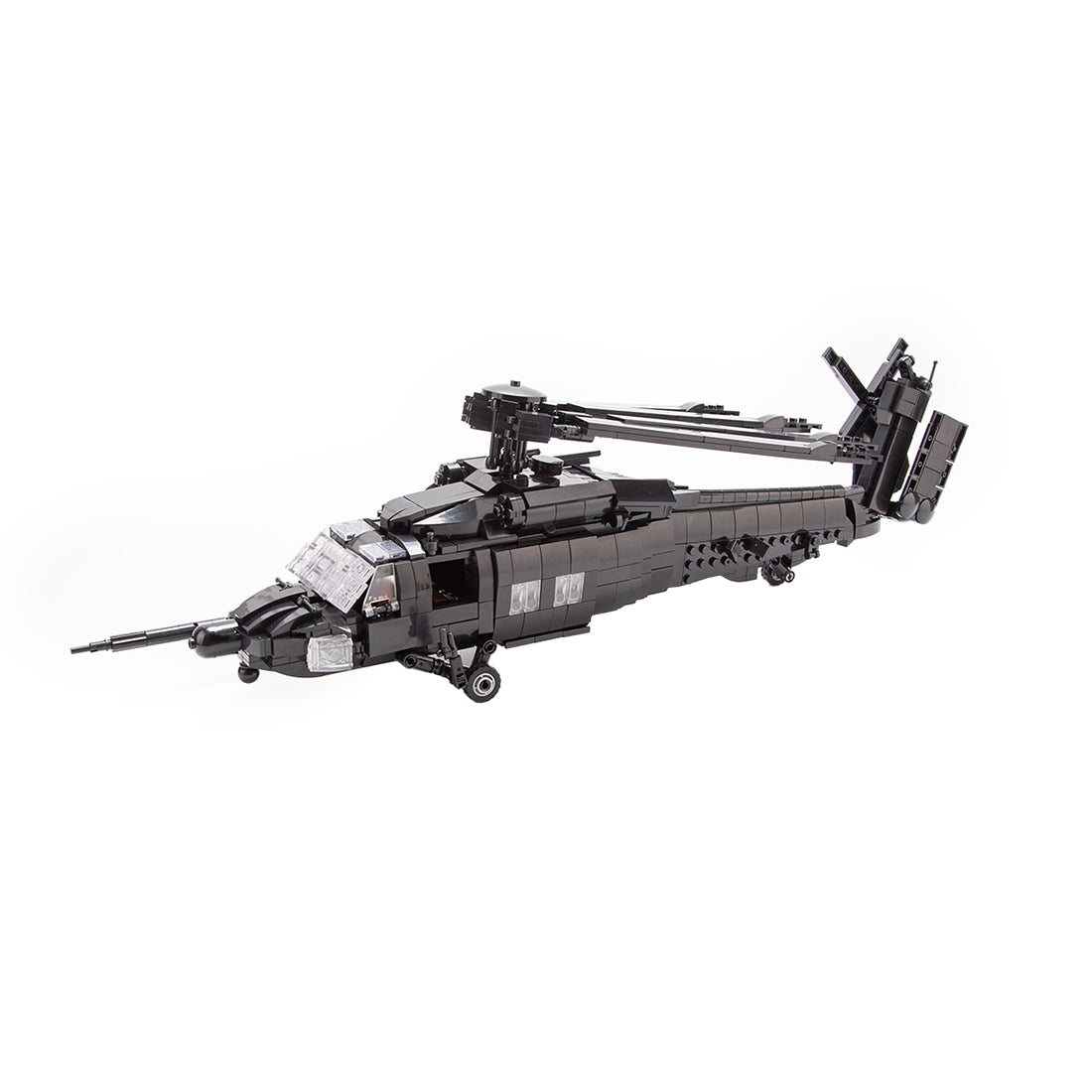 .Model Description: Designed and authorized by Minh Gia Nguyen, this MOC with camouflage paint meticulously replicates the details of the real MH60M helicopter. Equipped with aerial refueling probes for mid-air refueling for long-distance combat, search, and rescue missions.