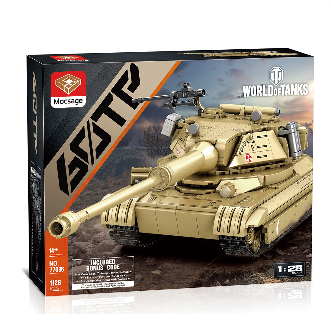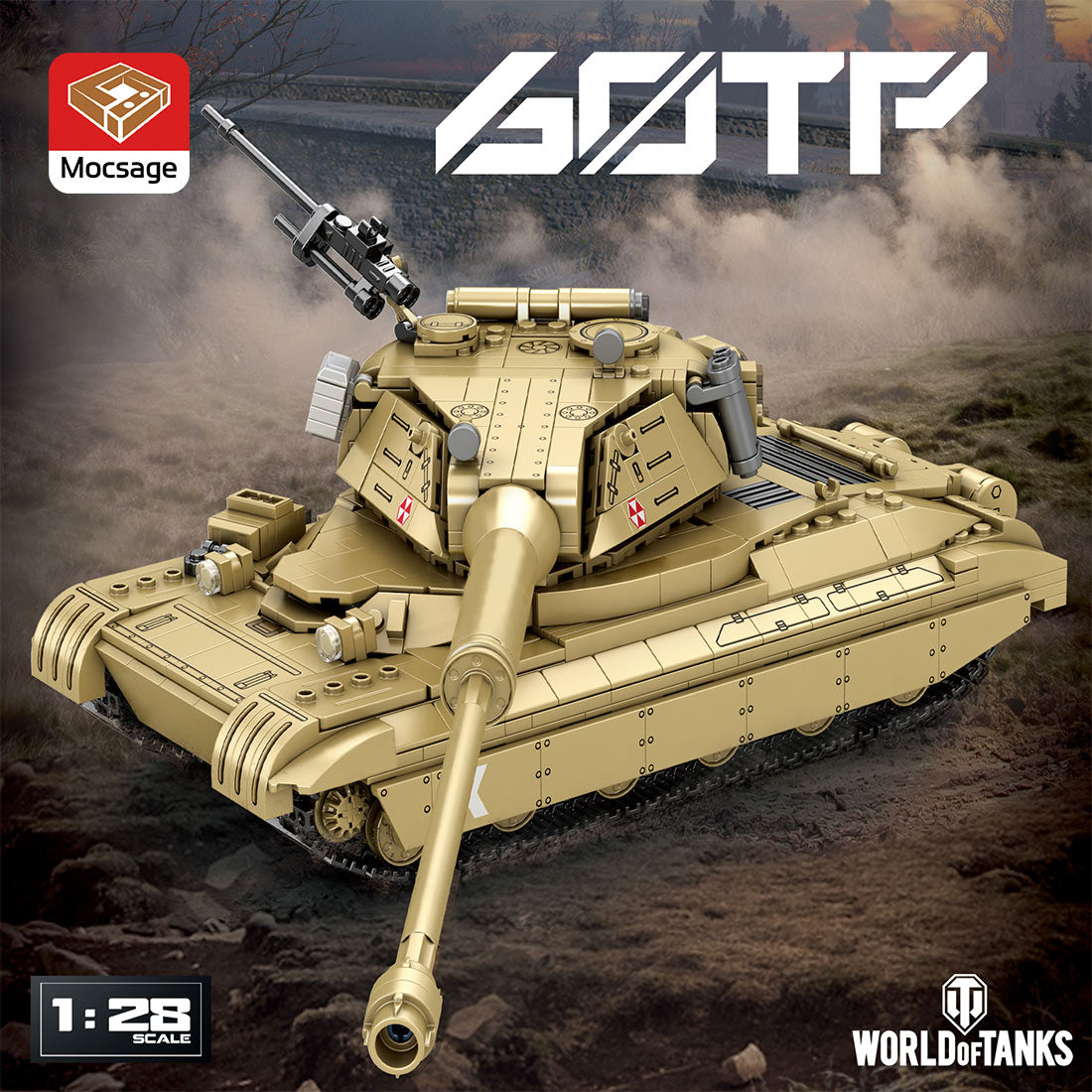 .Parts Description: This product contains a total of 1125 parts.The chain is movable and comes with exquisite transfer stickers. It has many visual details: the interior reproduces the tank driver's seat, and the exterior has attached oil drums and machine guns.
