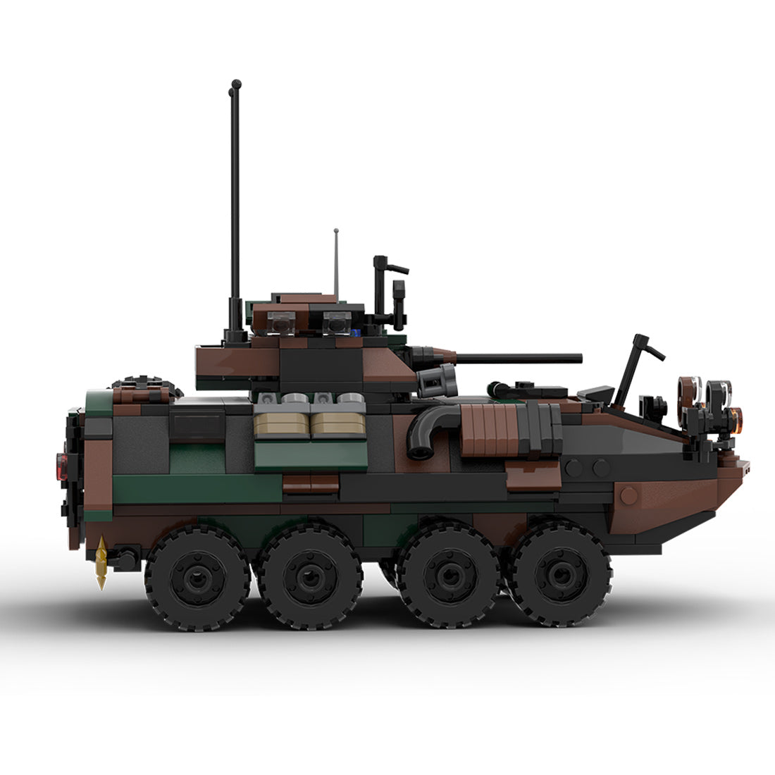 .Product Introduction: The LAV-25 infantry fighting vehicle, constructed using 476 building blocks, is a type of wheeled infantry fighting vehicle developed by the United States in the early 1980s. The body and turret of the LAV-25 infantry fighting vehicle are both composed of armored steel welding structures. The frontal area can withstand 7.62mm armor-piercing rounds, while other areas are resistant to 7.62mm armor-piercing bullets and shell fragments.