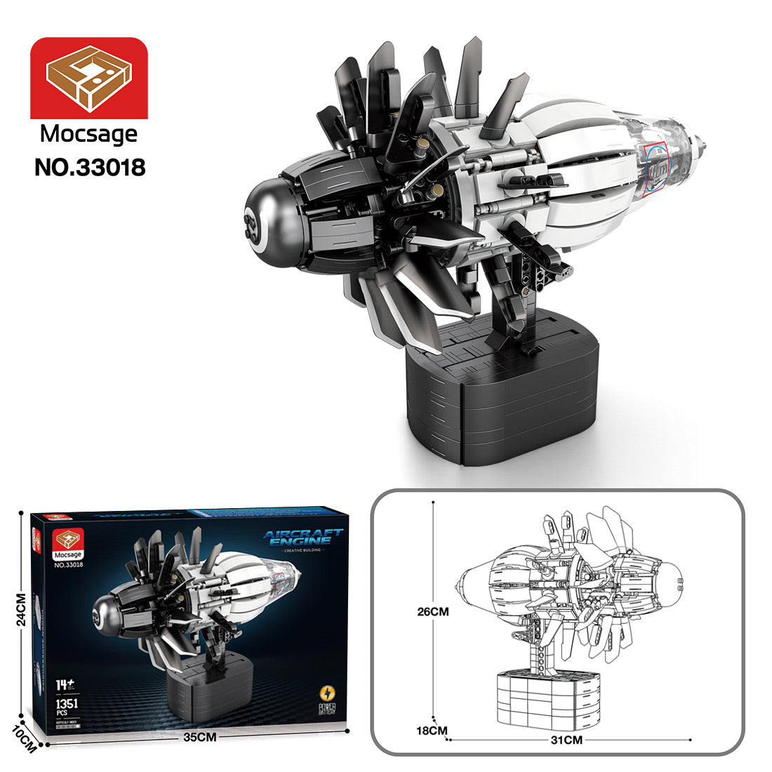 .Product Introduction: Designed and authorized by Levihathan. This building block model boasts exquisite detail and design, continuing the designer's previous design philosophy as the anticipated successor to the  turbofan engine. The model features a single-stage open rotor in a traction configuration. The main bracket conceals the motor and variable pitch mechanism. The design is exceptionally robust, aesthetically pleasing, and fully considers the fun of assembly, making it a highly ornamental and collectible item.